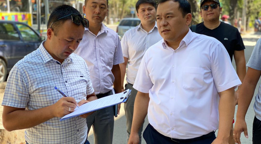 Биринчи май районунун башчысы Максат Нусувалиев райондук кызматтар менен бирге Москва көчөсүн Абдрахманов көчөсүнөн Тынчтык проспектисине чейин кыдырып текшерип чыкты.