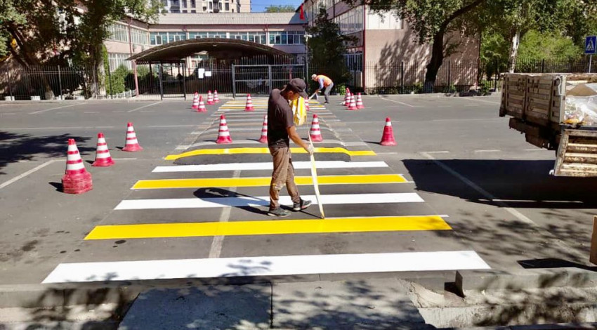 Шаардын төрт районунда билим берүү мекемелерине жакын жайгашкан жол белгилери жана чийиндери жаӊыланууда. Бул ишти “Бишкекасфальтсервис” муниципалдык ишканасы жүргүзүүдө.