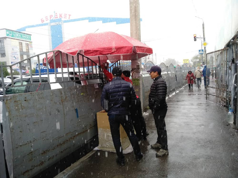 Стихиялуу сооданы жоюу үчүн мобилдик топ «Ош Базары» соода оюн -зоок комплексинин аймагында рейд жүргүздү. Чүй проспектиси, Киев, Токтогул, Кулиев, Бейшеналиева көчөлөрүнүн боюндагы сатуучулар стихиялуу соода жерлерин таштап кетишти.