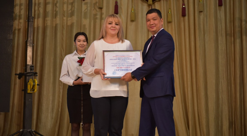 3- орун - Көкүмбай кызы Гүлжамал, №6, мектеп-гимназиясынын кыргыз тили жана адабият мугалими, акчалай сыйлык 60.000 сом;