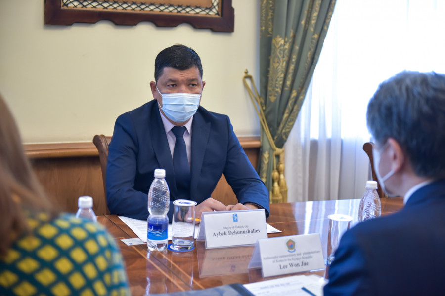 Борбор калаанын мэри Айбек Жунушалиев Корея Республикасынын Кыргыз Республикасындагы Атайын жана Ыйгарым укуктуу Элчиси Ли Вонджэ мырза менен жолукту.
