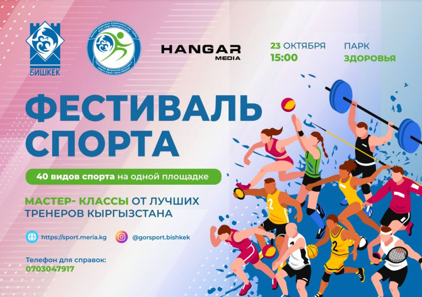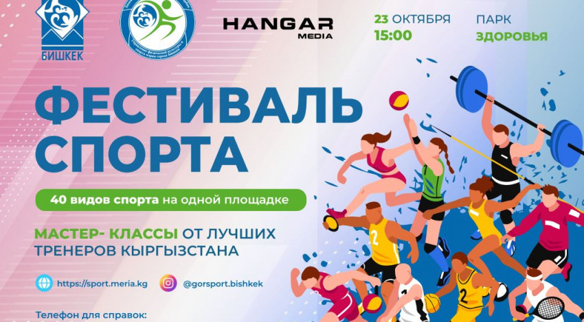 Спорт фестивалы ден соолук паркында 23 -октябрда саат 15:00дө өтөт. Иш -чара аба ырайына байланыштуу ушул күнгө жылдырылды.