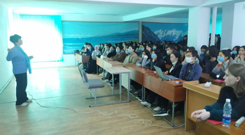 Ленин районунун акимиаты №1 БҮМБ жана №2 ҮМБ медицина кызматкерлери менен биргеликте К.Карасаев атындагы БМУнун жана Кыргыз Мамлекеттик юридикалык академиясынын студенттери үчүн жолугушууларды уюштурушту.