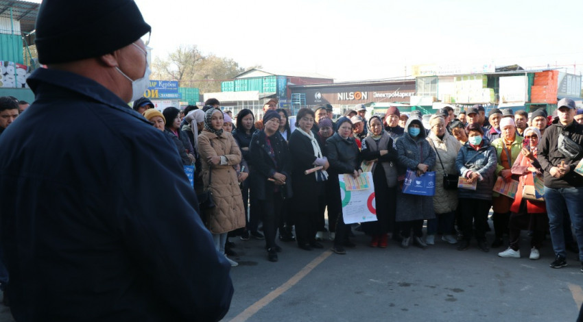 Башчынын биринчи орун басары Садык Мырзакматов, №1 Бириккен үй-бүлөлүк дарыгерлер борборунун жана Бишкек шаардык ден соолукту чыңдоо борборунун адистери тарабынан базардын ижарачыларынын арасында COVID-19 коронавирус инфекциясына каршы эмдөө алуунун маанилүүлүгү жана санитардык талаптарды сактоо боюнча маалыматтык-түшүндүрүү иши өткөрүлдү.