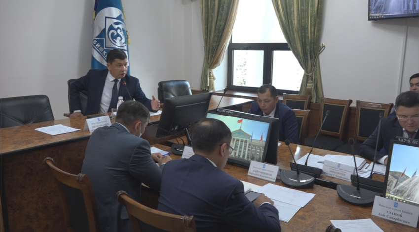 Бишкек шаарынын мэри Айбек Жунушалиев коронавирус инфекциясынын жайылышына каршы күрөшүү жана анын кесепеттерин жоюу боюнча шаардык ыкчам штабдын пландык жыйынын өткөрдү.