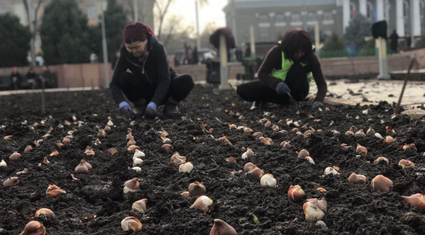 Борбор калаанын гүлзарларына жоогазындын баштарын отургузуу иштери башталды.