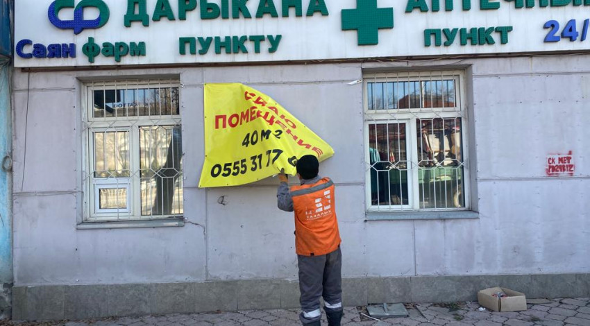 Жер пайдалануу жана курулуш башкармалыгы “Бишкекбашкыархитектура” мамлекеттик мекемеси, райондук администрациялар Бишкек шаарынын борбор көчөлөрүндө тиешелүү документтери жок орнотулган көрнөк-жарнактарды алып жатышат.