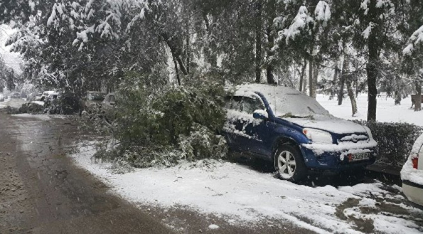 Кутман таң! Бүгүн борбор калаада кар жаап жатат. Калың кардан дарак бутактары оорлойт.