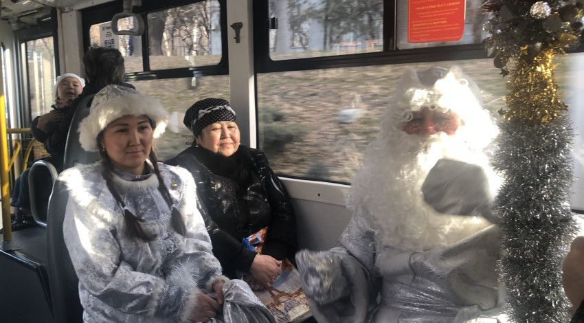 Аяз ата жана Аяз кыз троллейбустардын жүргүнчүлөрүн келе жаткан жаңы жыл менен куттуктады. 22-декабрда шаардын көчөлөрү менен жаңы жылдык № 5 троллейбус каттамда болду.