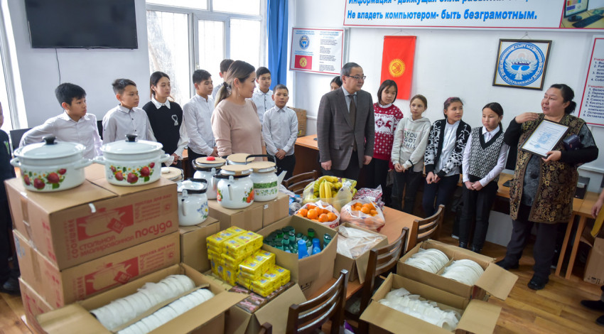 Мекеменин суранычы боюнча ашкана идиштеринин комплекттери, самын, жуучу каражаттар, мөмө-жемиштер жана таттуулар сатылып алынып, тапшырылды.