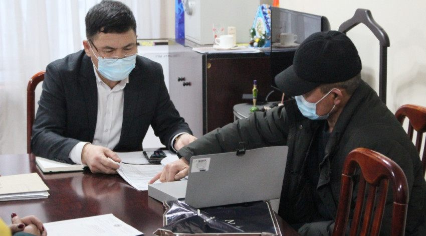 Октябрь районунун акими Мирлан Эшкожоев салтка айланган жарандарды жеке кабыл алуу өткөрдү.