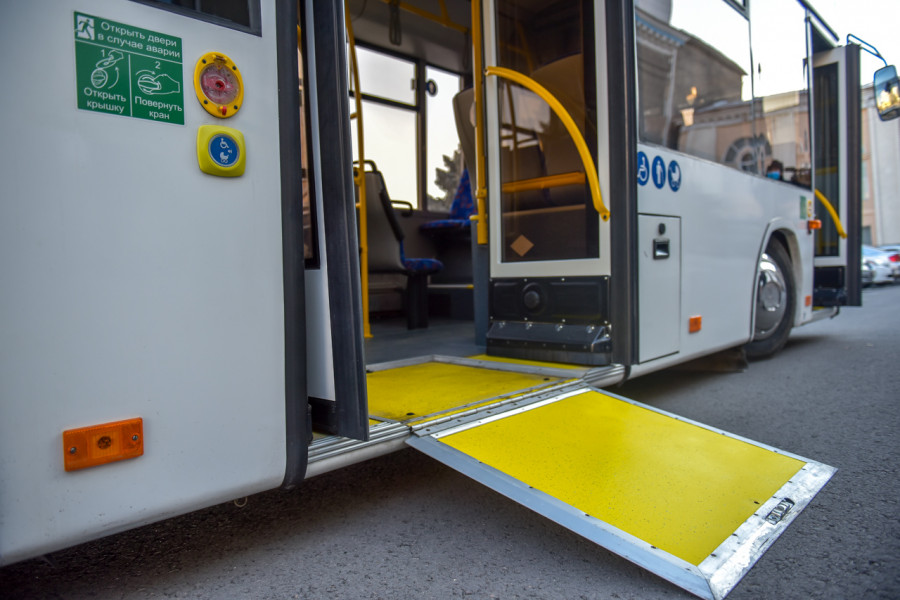-Автобуста майыптарга коляска менен кирүү үчүн бүктөлүүчү тепкич;