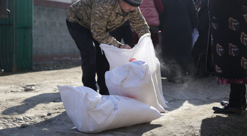 Өзгөчө кырдаалдар министрлиги гуманитардык жардамды элге таратуу пункттарына жеткирүүгө көмөктөштү.