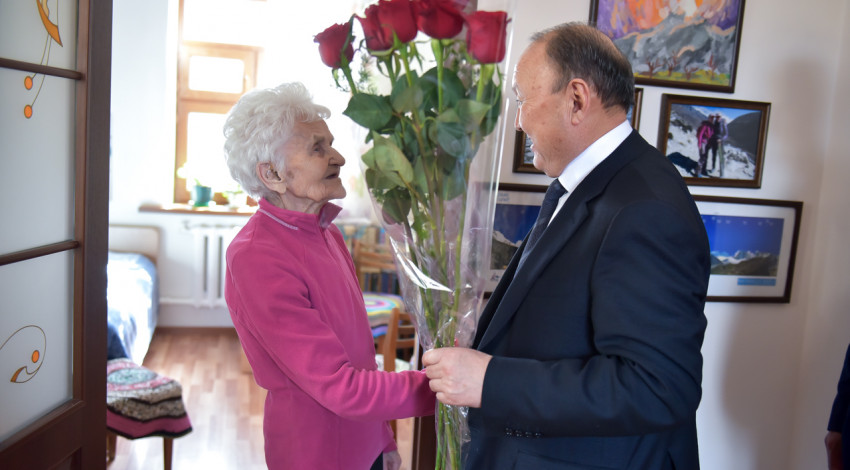 Ошондой эле калаа башчысы пенсионер Синусова Нина Ивановнаны жеке өзү куттуктады. Ал 1921-жылы 8-июлда туулган, УАМСтун жесири жана тылдын жумушчусу, 1932-жылга чейин туулган катары каттоодо турат.