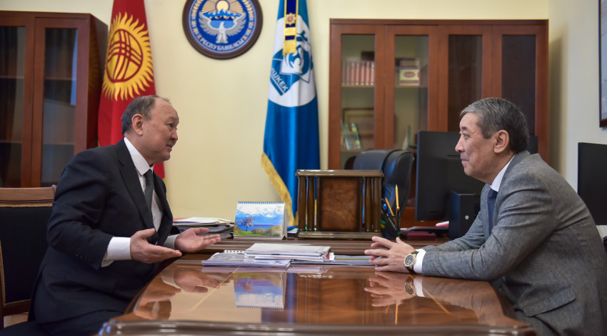 Бишкек шаарынын мэри Эмилбек Абдыкадров менен Кыргыз Республикасынын Улуттук статистикалык комитетинин төрагасы Бактыбек Кудайбергенов жолукту.