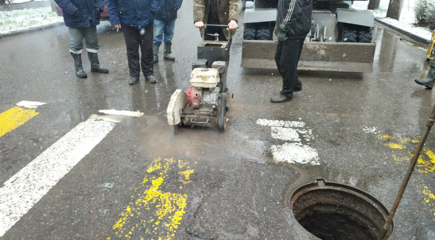 Москва көчөсү менен Жаш Гвардия бульварынын кесилишинде жолдун четинде 5 метр тереңдиктеги канализациялык кудук иштен чыккан.