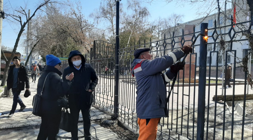 Инспекция “Тазалык” муниципалдык ишканасынын кызматкерлери менен биргеликте И.Ахунбаев атындагы КММАнын тосмолорун демонтаждоо иштерин баштады.