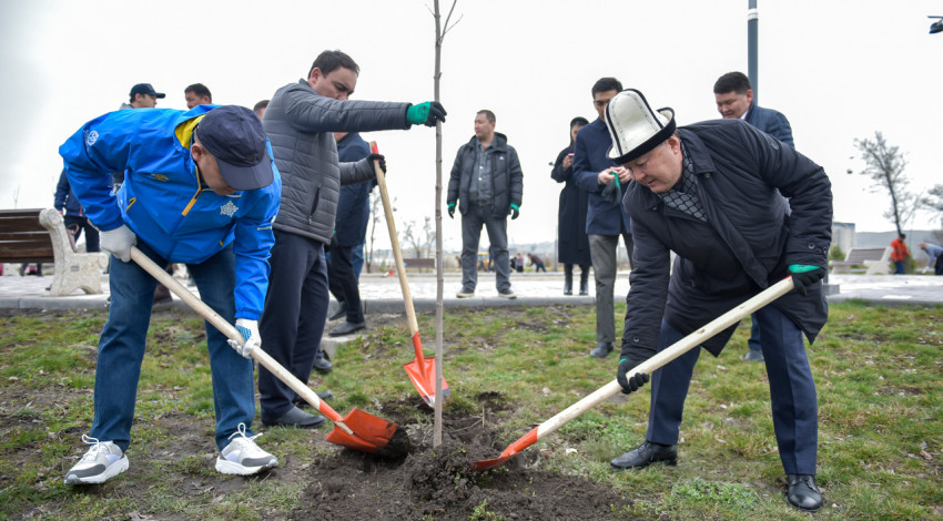 “Ынтымак-2” сейил багында Бишкек шаарынын мэри Эмилбек Абдыкадыров жана Казакстан Республикасынын Кыргызстандагы Атайын жана Ыйгарым укуктуу элчиси Рапиль Жошыбаев 30 түп клен, ясень, липа жана куш алча көчөттөрүн отургузушту.