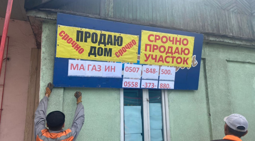 Биринчи май райондук администрациясынын кызматкерлери көрктөндүрүү жана жер пайдаланууну көзөмөлдөө боюнча муниципалдык инспекциясы жана «Тазалык» ишканасы менен биргеликте райондо уруксатсыз орнотулган жарнама конструкцияларын алууну улантууда.