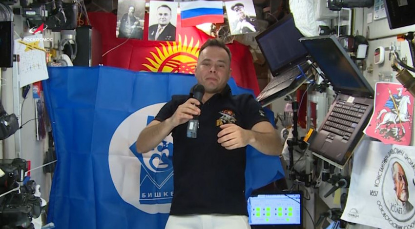Бишкек шаарында туулуп-өскөн, азыр сыноочу- космонавт Сергей Корсаков Эл аралык космос станциясында Бишкек шаарынын желегинин фонунда шаар тургундарын борбордун 144 жылдыгы менен куттуктады.