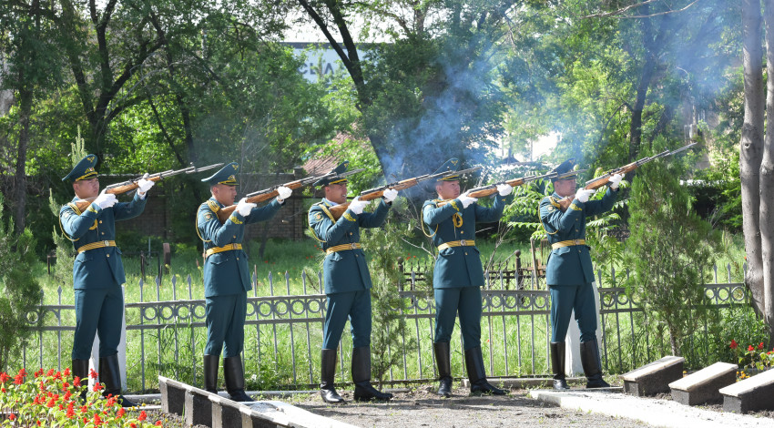 Бишкек шаарында боордоштор көрүстөнүндө Улуу Ата Мекендик согуштагы Жеңиштин 77 жылдыгына арналган митинг-реквием болуп өттү.