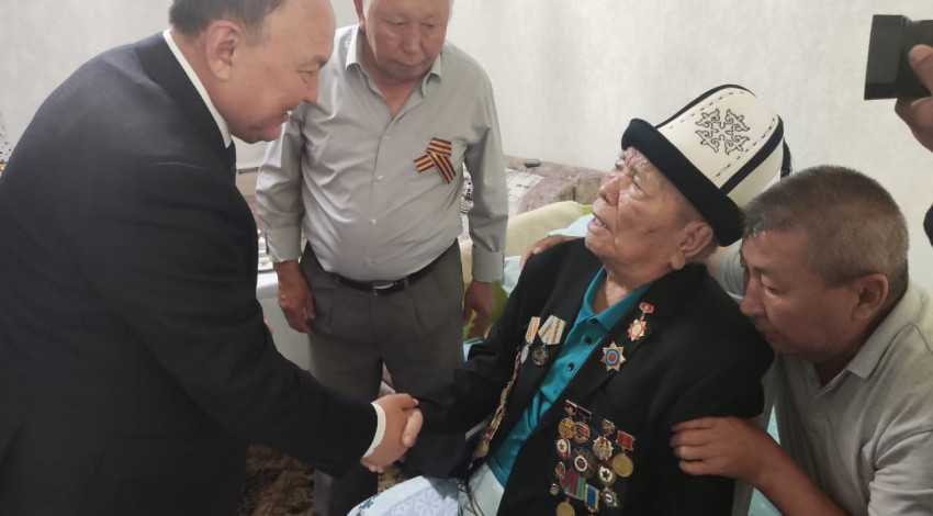 Борбор калаанын мэри Эмилбек Абдыкадыров Улуу Ата Мекендик согуштун ардагери Садыр Мамбетходжаевди зыярат кылып, Жеңиш майрамы менен куттуктады.