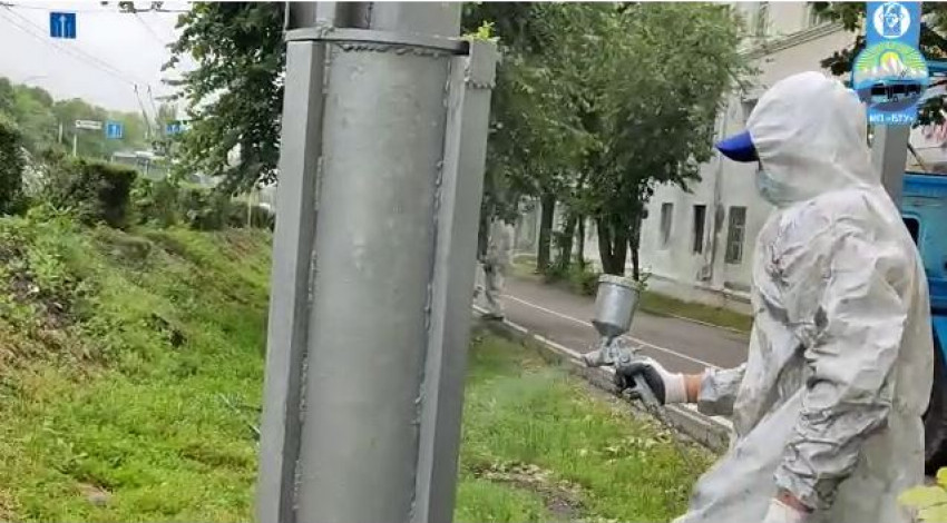 Бишкек троллейбус башкармалыгы калаа башчы Эмилбек Абдыкадыровдун тапшырмасынын негизинде тирөөч мамыларды сырдоодо.