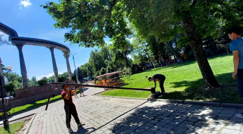 Эмен паркында заманбап тышкы чырактарды "Бишкекжарык" муниципалдык ишканасынын адистери орнотушту.