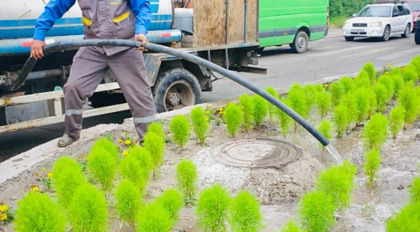 Таттыбүбү Турсунбаева, Тоголок Молдо, Өкмөттүк скверлери, Шопен, Профсоюз , Жукеев- Пудовкин, Абдымомунов, Манас/Бөкөнбаев, Каралаев, Абдрахманов, Донецкий, 7апрель, Ибраимов жана Фрунзе көчөлөрүндөгү бак-дарактар, көк майсан сугарылды.