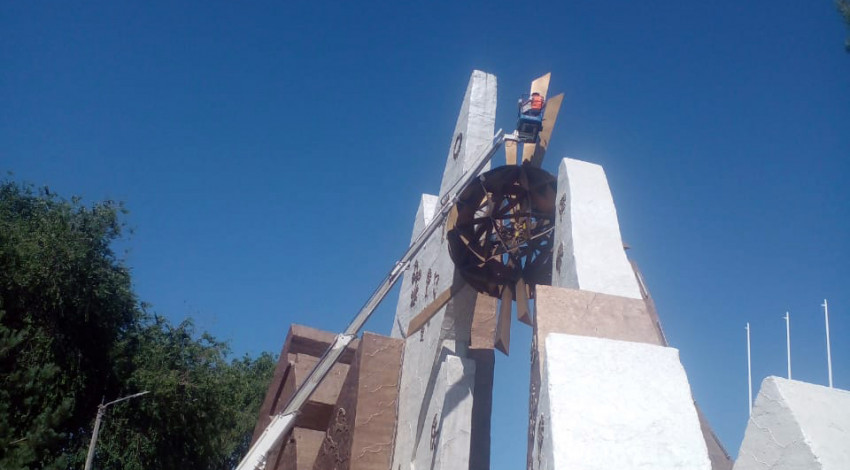 Буга чейин ушул эле комплексте тазалыкчылар фонтандарды, отургучтарды, урналарды, «Бишкек» деген жазууну жана стеладагы орнаментти сырдашкан.