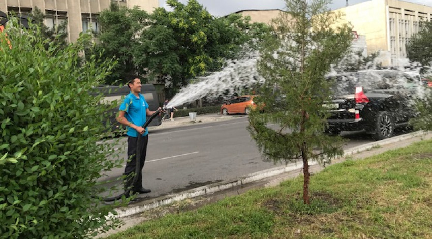 Түнкүсүн автоунаа сугаты менен Абдрахманов, Масалиев, Байтик-Баатыр Ахунбаев, Шопоков, Токомбаев жана Сухэ -Батор көчөлөрү сугарылды. Сугат иштерине 8 атайын автоунаа тартылды.