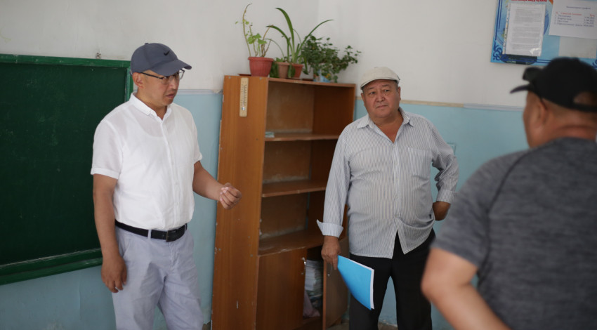 Башчы жолугушуунун башында №86 мектептин техникалык абалы менен таанышты, учурда чатырын алмаштыруу иштери жүрүп жатат, мындан тышкары имараттын ичин оңдоо иштери жана комплекстүү жабдыктар менен камсыз кылуу талап кылынууда.