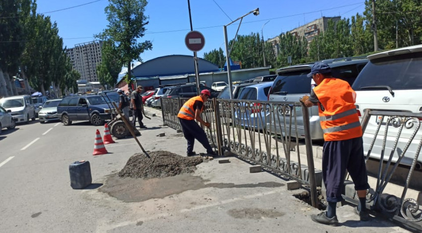 "Бишкасфальтсервис" муниципалдык ишканасы 7-Апрель көчөсүнүн жүрүүчү бөлүгүн көчөнүн чыгыш тарабынан өткөөлгө чейин кеңейтти. Ошондой эле, "Мадина" базарынын алдында металл тосмолор орнотулду.