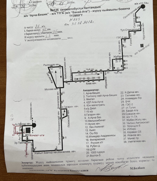 №4 муниципалдык аймактык башкармалыгынын өтүнүчү менен «Трансгрупп Коммуникэйшн» ЖЧКсынын №135 кичиавтобустун кыймылынын схемасы Ак Марал көчөсү менен андан ары Чортеков, Күйүков, Ак Таң, Камбар Ата, Садыбакасов, Эр-Тайлак көчөсүнө чейин жарым-жартылай өзгөртүлүп, калганы өзүнүн схемасы боюнча.