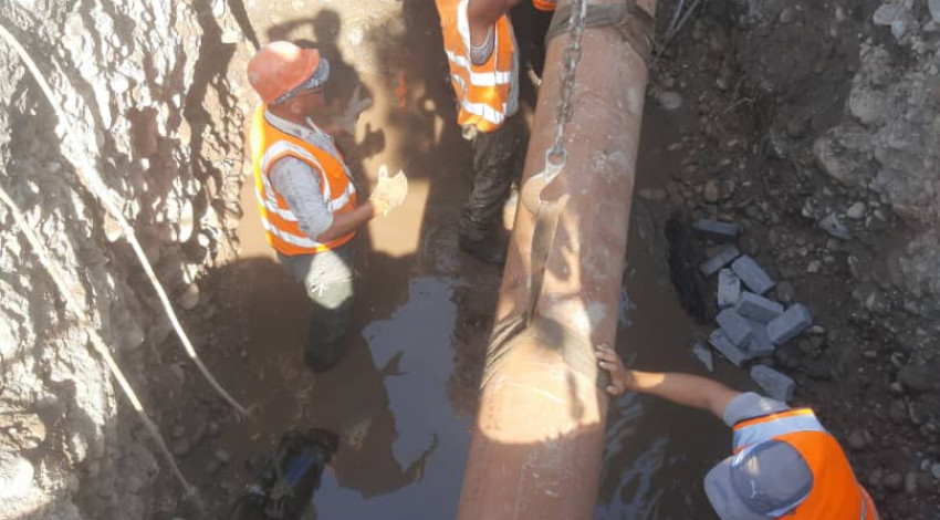 Башкармалыктын адистери диаметри 400мм суу өткөрмөдөгү аварияны четтетүү боюнча иштерди жүргүздү. Түтүктү ачуу учурунда, анын үч жеринен жаранка кеткени табылды. Адистер 6 метр аралыктагы суу өткөрмөнү алмаштырышты жана суу өткөрмө түтүккө жылдыруучу муфталарды орнотушту.