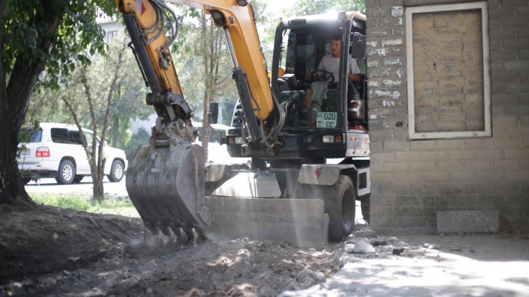 Биринчи май районунун аймагында тротуарларды оңдоо иштери кызуу жүрүп жатат.