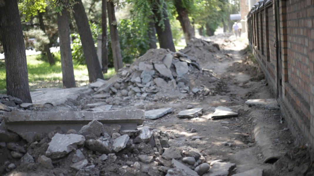 “Бишкекасфальтсвервис” муниципалдык ишканасын тарабынан Жибек-Жолу проспектисинин Тоголок Молдо көчөсүнөн Исанов көчөсүнө чейинки бөлүгүндөгү тротуардын 300 метрге жакын бөлүгүндө асфальттын эски катмары алынып, ошол эле учурда геодезиялык изилдөө иштери жүргүзүлүүдө.
