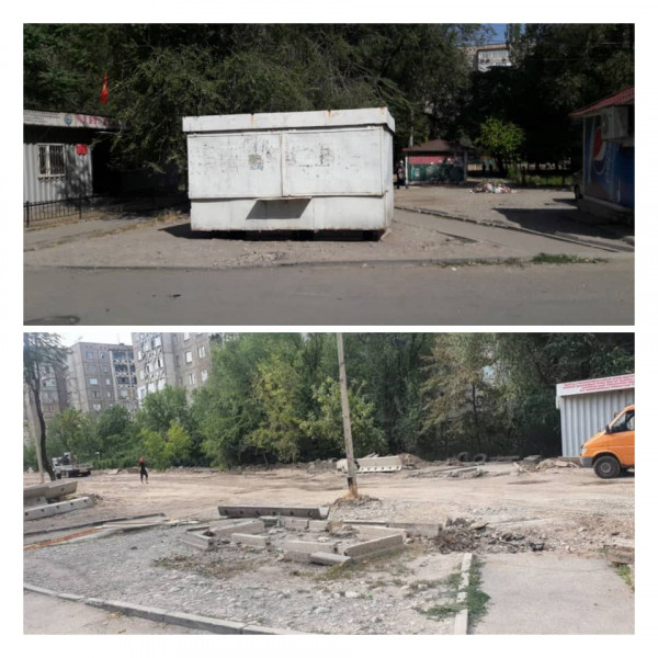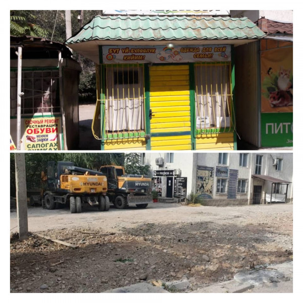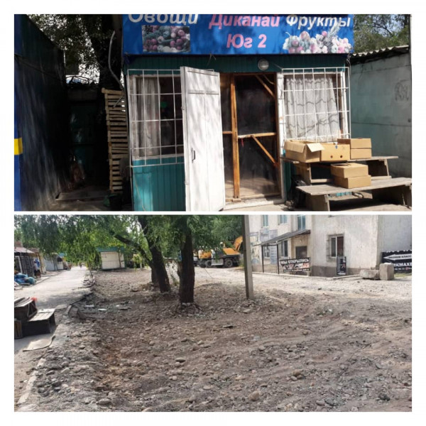 Биздин команда кеңсе буюмдарын саткан мыйзамсыз орнотулган күркөнү, 18 чарчы метрди ээлеген «Даканай Юг-2» күркөсүн, 25 чарчы метрди ээлеген «MIX» күркөсүн дагы алып салды.