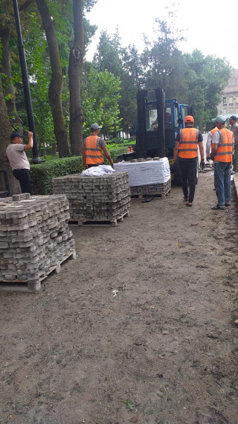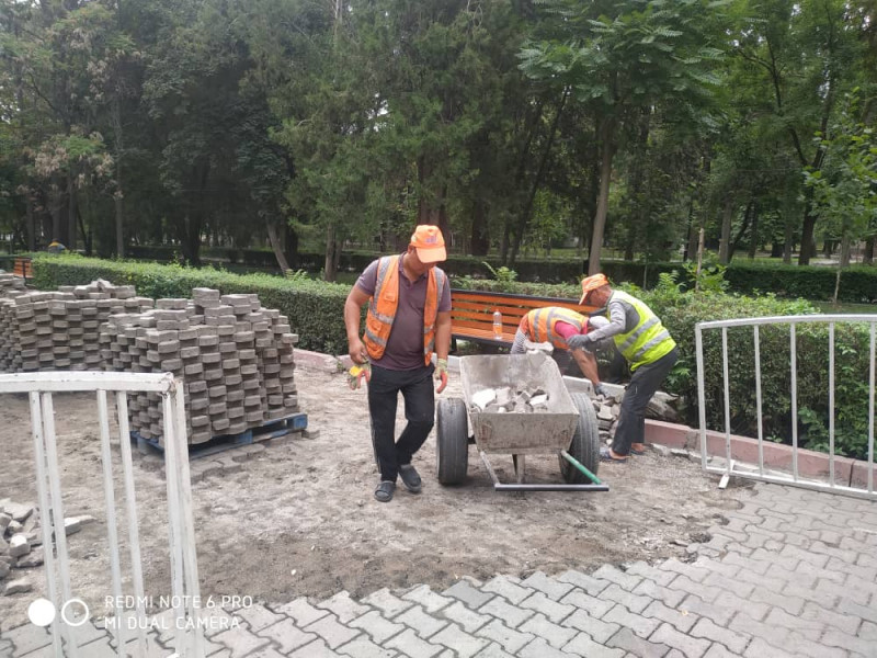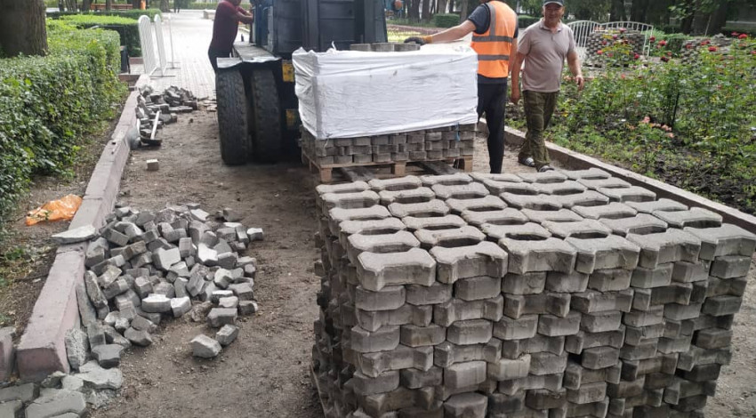 Ошентип, тазалыкчылар Өкмөт гүлбакчасындагы таман таштарды алмаштырууга киришти. Аталган ишке 35 жумушчу жана 3 атайын техника тартылган.
