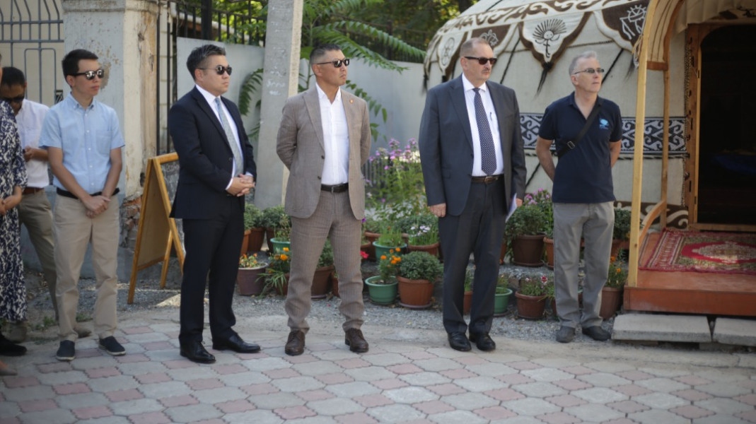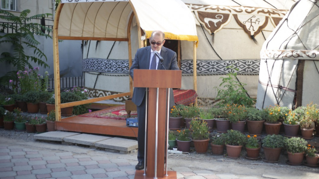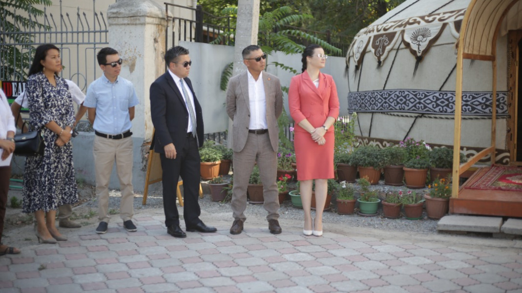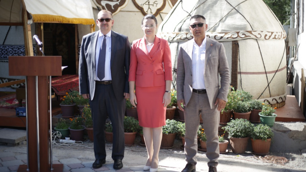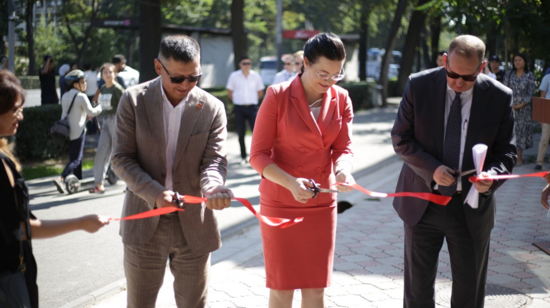 Биринчи май районунда Чүй проспектиси менен Тоголок Молдо көчөсүнүн кесилишинде жайгашкан имараттын фасадына тартылган муралдын салтанаттуу ачылыш аземи болуп өттү.