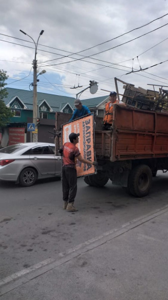 Мыйзамсыз орнотулган объектилерди демонтаждоону да унуткан жокпуз. Алсак, Бакаев көчөсү Ахунбаев көчөсүнөн Гагарин көчөсүнө чейин, Асаналиев көчөсү Бакаев көчөсүнөн Лев Толстой көчөсүнө чейин, Садырбаев көчөсү Ахунбаев көчөсүнөн Гагарин көчөсүнө чейин текшерилип, 57 даана штенд жана 3 баннер алынды.