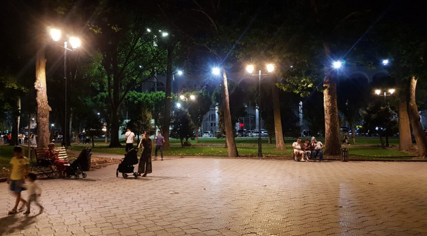 Элдердин достугу бакчасында бийиктиги 3 метр пушкин стилиндеги 26 темир-болоттон жасалган тирөөчтөрдүн, ошондой эле 27 бийиктиги 6 метр болгон ушул сыяктуу тирөөчтөрдү орнотуу менен тышкы жарык берүү тармактарын оңдоо жана калыбына келтирүү иштери жүргүзүлдү. Бул тирөөчтөрдүн ар биринде экиден чырак жарык берет. Натыйжада, азыр аянтта 53 жаңы тирөөч жана 106 чырак орнотулду .