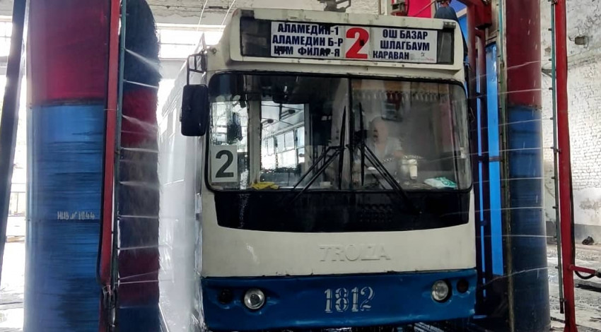 “Бишкек троллейбус башкармалыгы” муниципалдык ишканасынын троллейбустары күн сайын жууп-тазаланып турат.