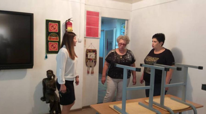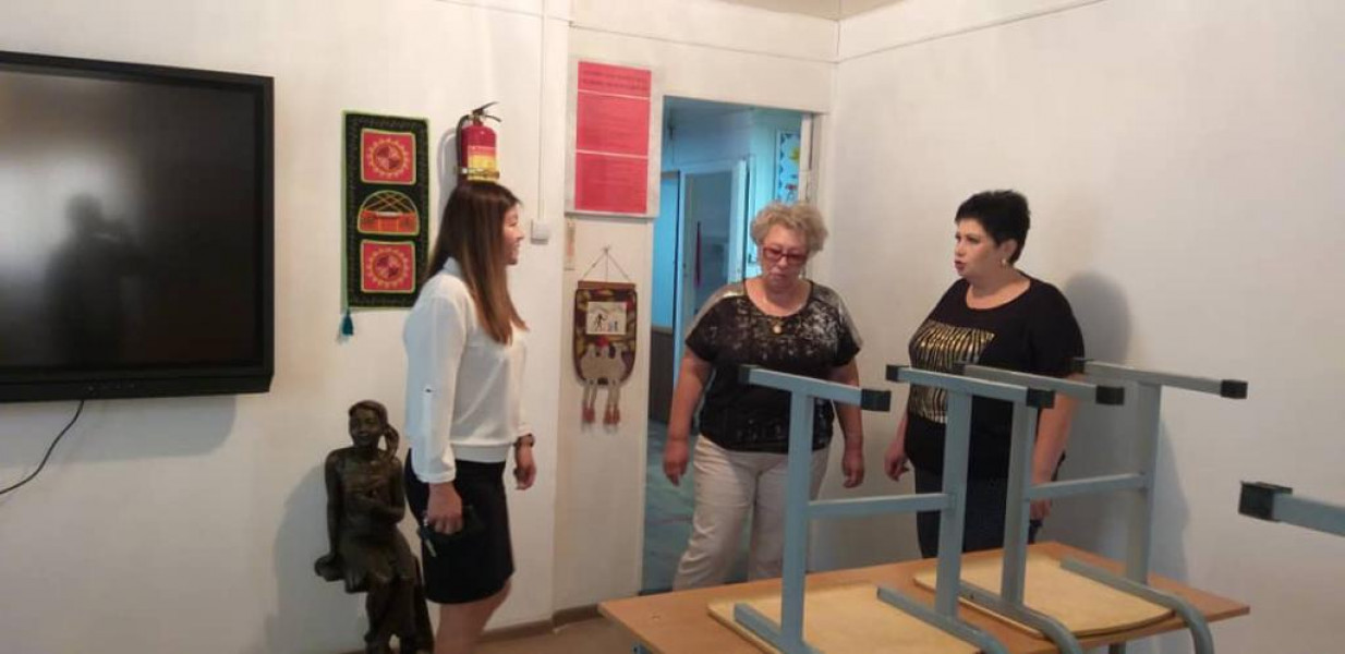 Ленин районунун билим берүү борборунун директору Таалайгүл Темирканова Бишкек шаарындагы мектептердин ремонт иштери менен таанышты.