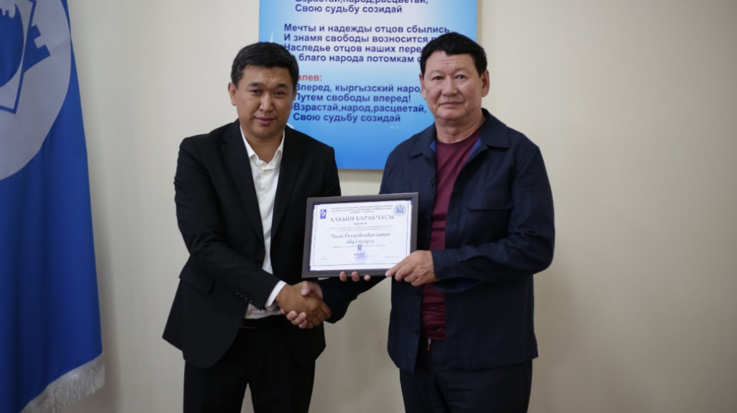 Ыраазычылык каттарды Биринчи май районунун акиминин биринчи орун басары Жээнбек Осмоналиев тапшырып, ыраазычылык билдирди.