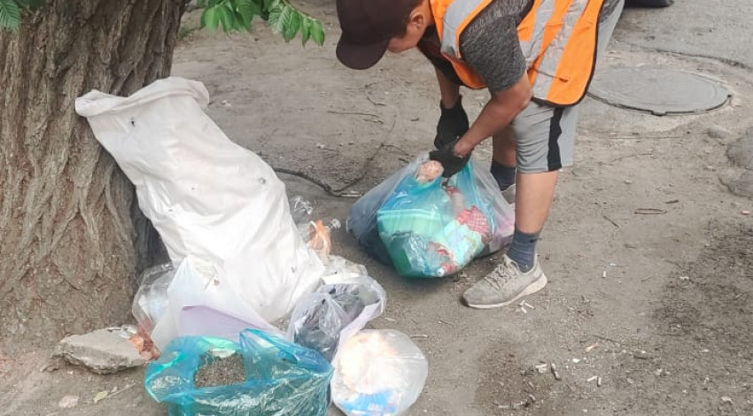 Урматтуу шаардыктар! Таштандыларды белгиленбеген жерге ыргытпоону жана кызматкерлерибиздин эмгегин сыйлооңуздарды суранабыз!