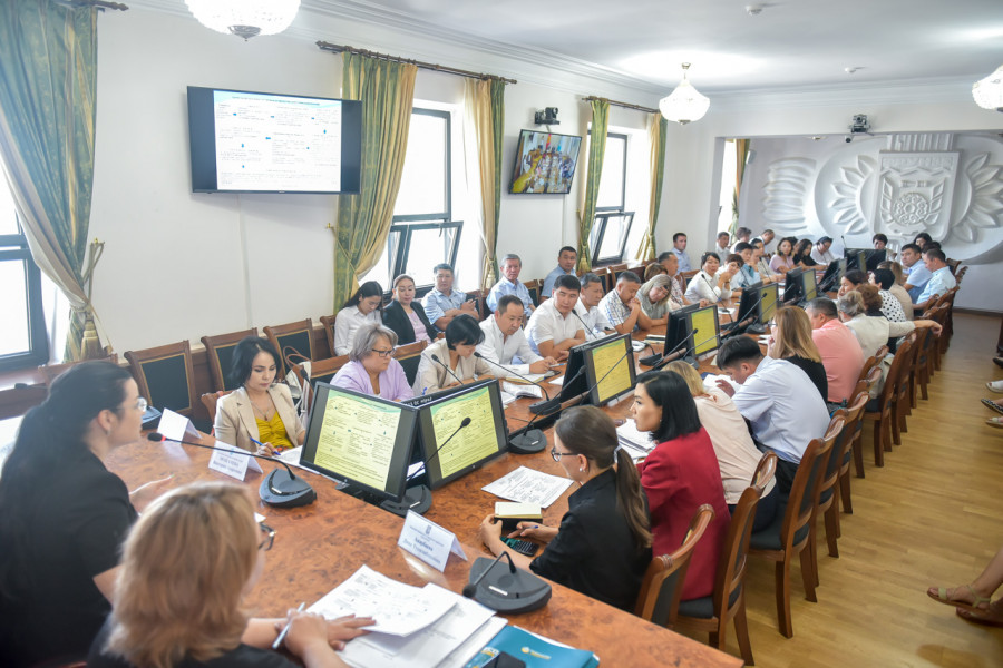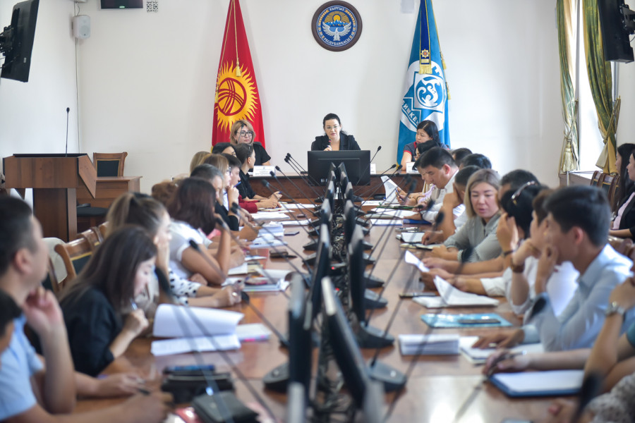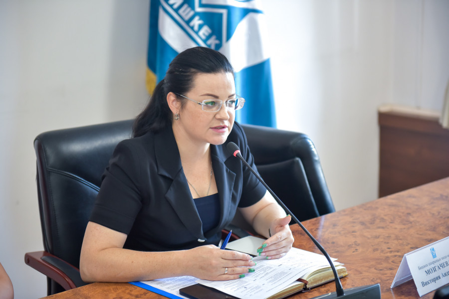 Муниципалитеттин жыйындар залында Бишкек шаарынын социалдык маселелер боюнча вице-мэри Виктория Мозгачеванын төрагалыгы алдында аз камсыз болгон үй-бүлөлөр үчүн социалдык келишим боюнча жыйын өттү.
