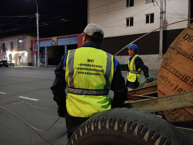Троллейбус линияларын алмаштыруу иштеринде ишкананын энерго чарба бөлүмүнүн 12 кызматкери иштеди.