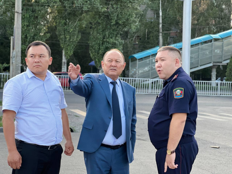 Бишкек шаарынын мэри Эмилбек Абдыкадыров шаардык кызматтар менен биргеликте унаа тыгыны көп болгон автожолдордун көйгөйлүү жерлерин текшерип чыкты.