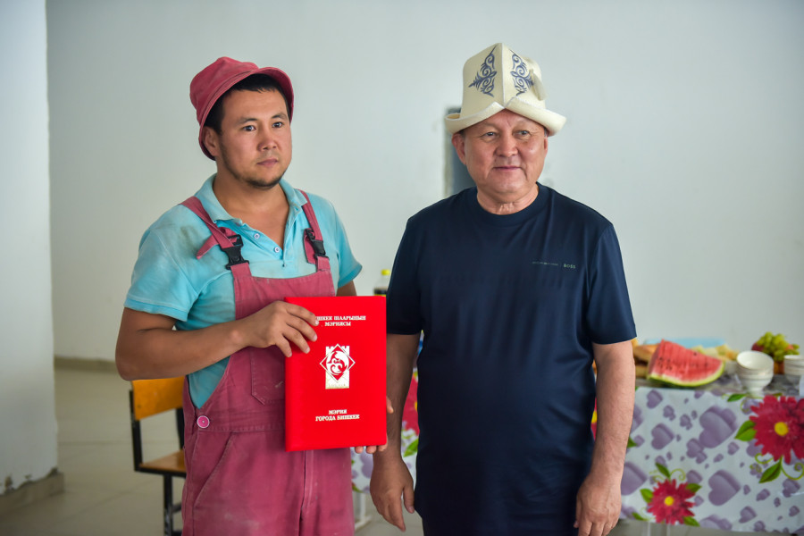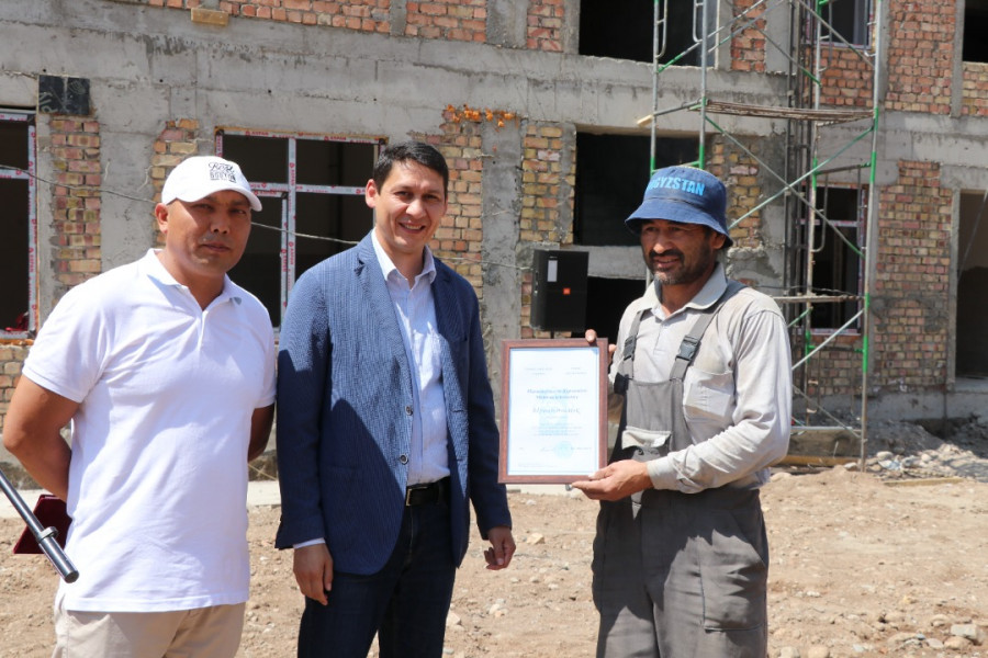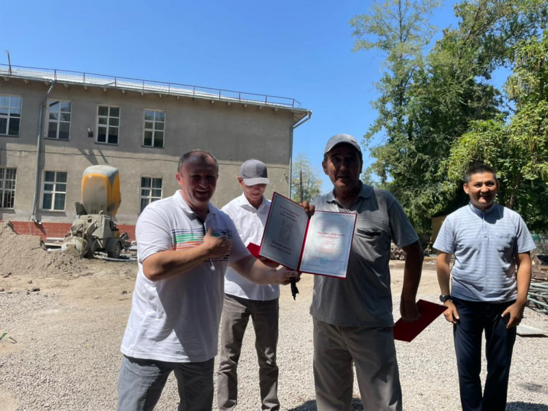 Курулуш тармагынын кызматкерлерин кесиптик майрамы менен муниципалдык менчик жана жер пайдалануу боюнча вице-мэр Нурлан Шаршеналиев жана Октябрь районунун акими Азамат Дороев «Тунгуч» кичи районундагы №73 орто мектепте, ошондой эле «Рухий-Мурас» жаңы конушундагы мектептеги куруучуларды куттукташты.